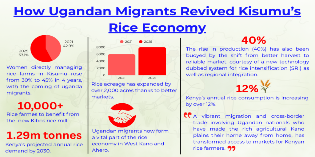According to a section of residents, the migration is contributing significantly to the growth of the Nyando rice belt where West Kano and Ahero Irrigation schemes lie.